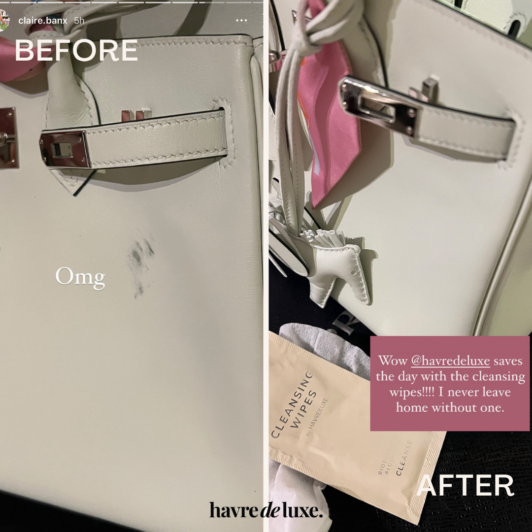 Life happens. Coffee spills. Makeup transfers. Denim bleeds onto your light leather. Our individually wrapped Cleansing Wipes have saved countless Birkins, Chanels, and everyday favorites from permanent damage - and they'll save yours too. Tuck one in every bag, because the best time to treat a stain is the moment it happens.