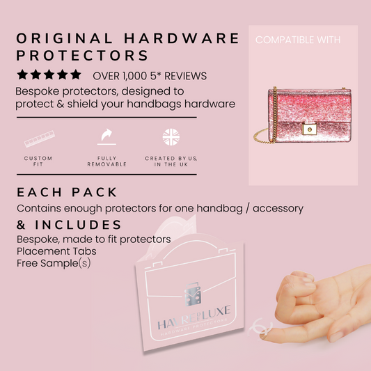 Your hardware tells a story - pristine clasps and unblemished turnlocks speak to how carefully you've cherished each piece. Our Hardware Protectors ensure that story continues, offering seamless defence against scratches, scuffs, and everyday wear.
